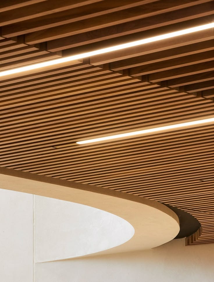 Fluted surfaces aren’t just for walls anymore. Think fluted POP, gypsum, or wood ceiling panels for: